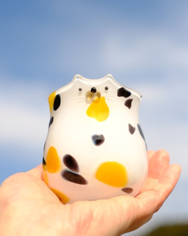 ⚫︎ねこっぷ⚫︎ もっちりボディに 猫のお顔がついたガラスのコップ。 お尻にはしっぽも♪ 飲み口を広げ、 チューリップ型のグラスなので 飲み物が飲みやすいかたち。 ただし、耳の部分から飲むのは おすすめしません☺️ 猫ちゃん好きにおすすめな キュートなグラスです♡ 〇高さ:約8-8.5cm程度 〇飲み口の直径:6-6.5㎝程度 ※1つ1つ手作りのため、形や大きさには多少の誤差があります。 ※耐熱ガラスではありません。