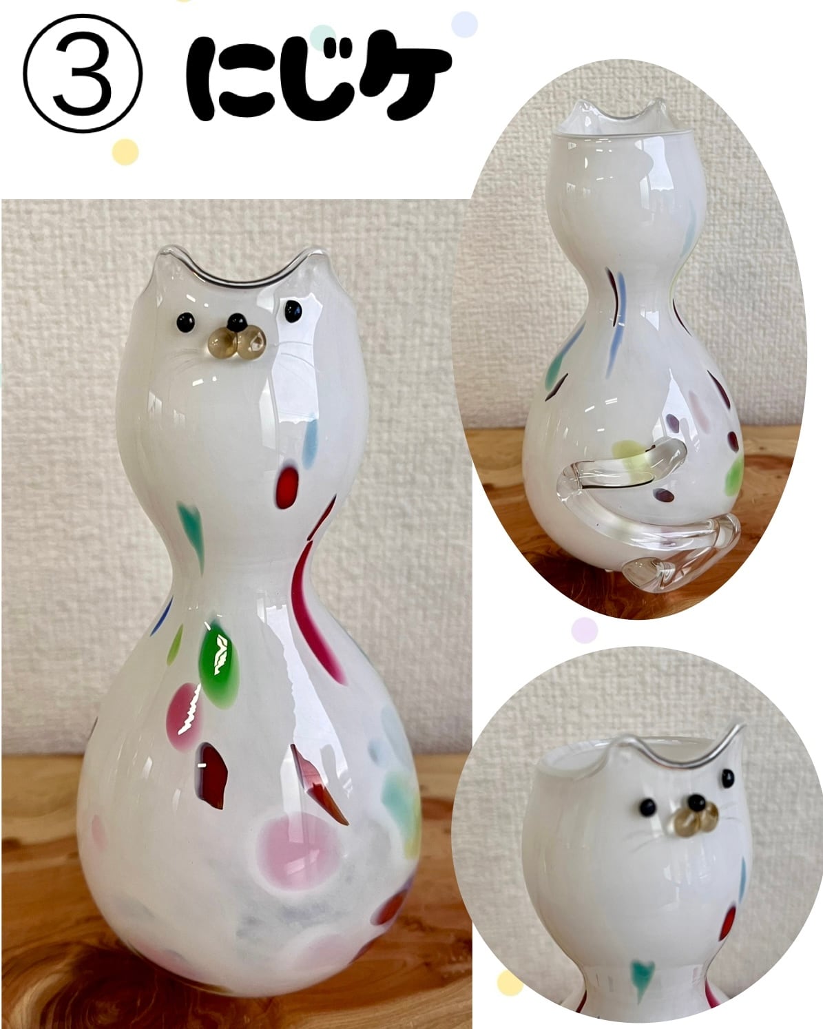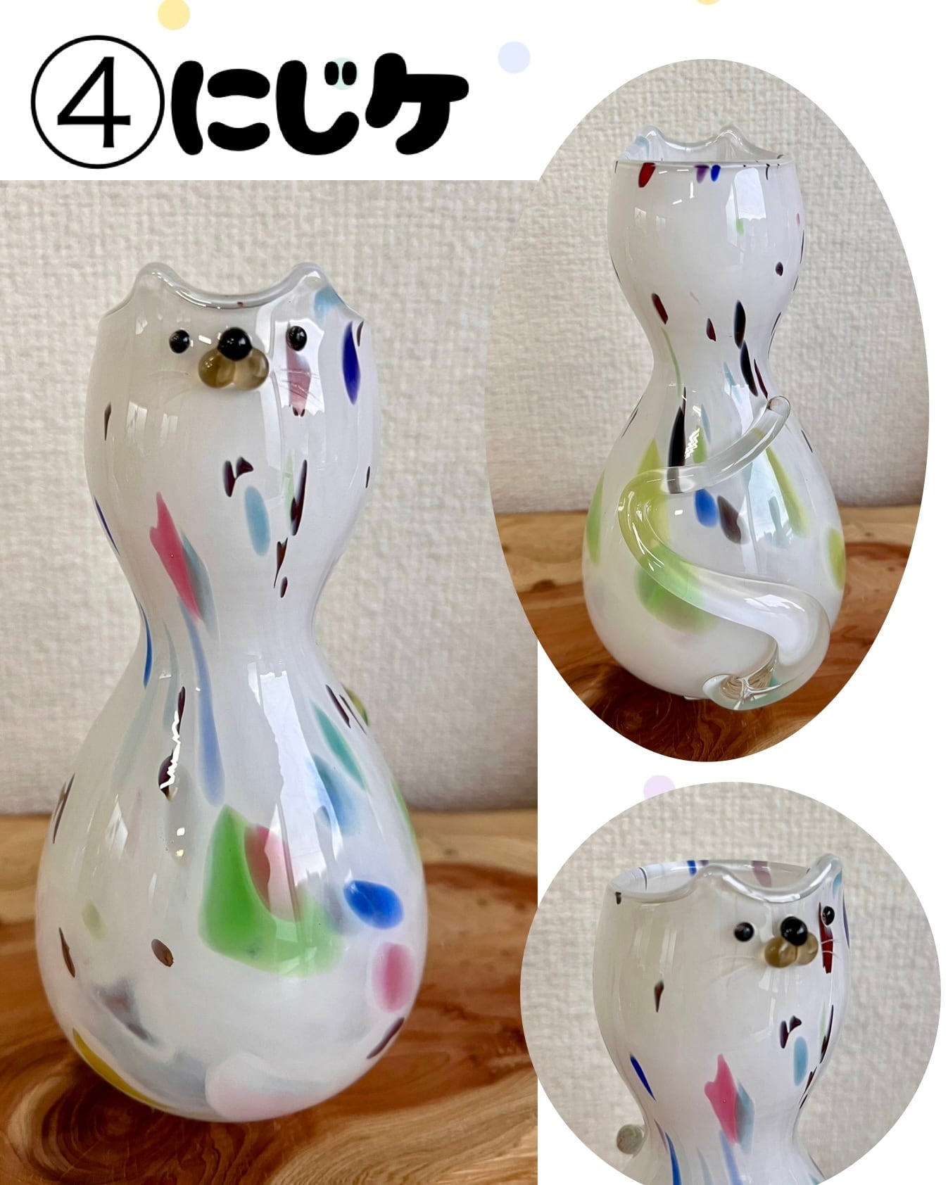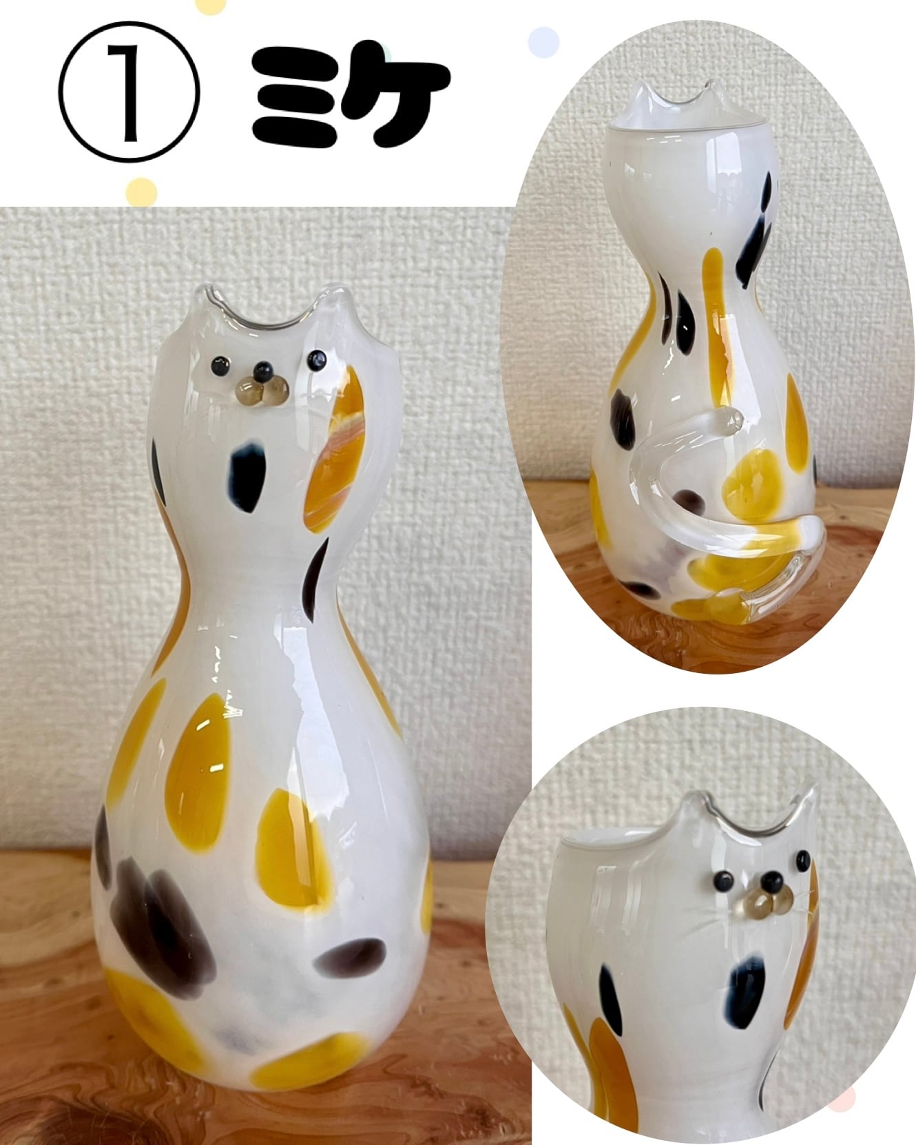 猫のお顔がついたガラスの花瓶。