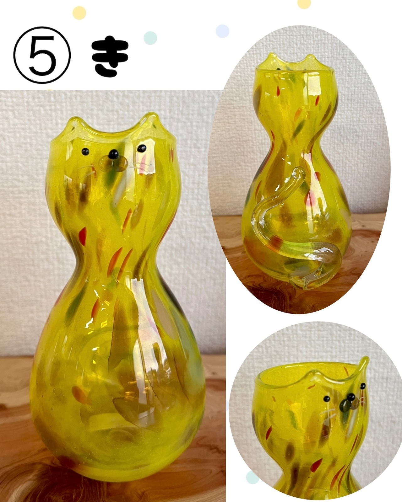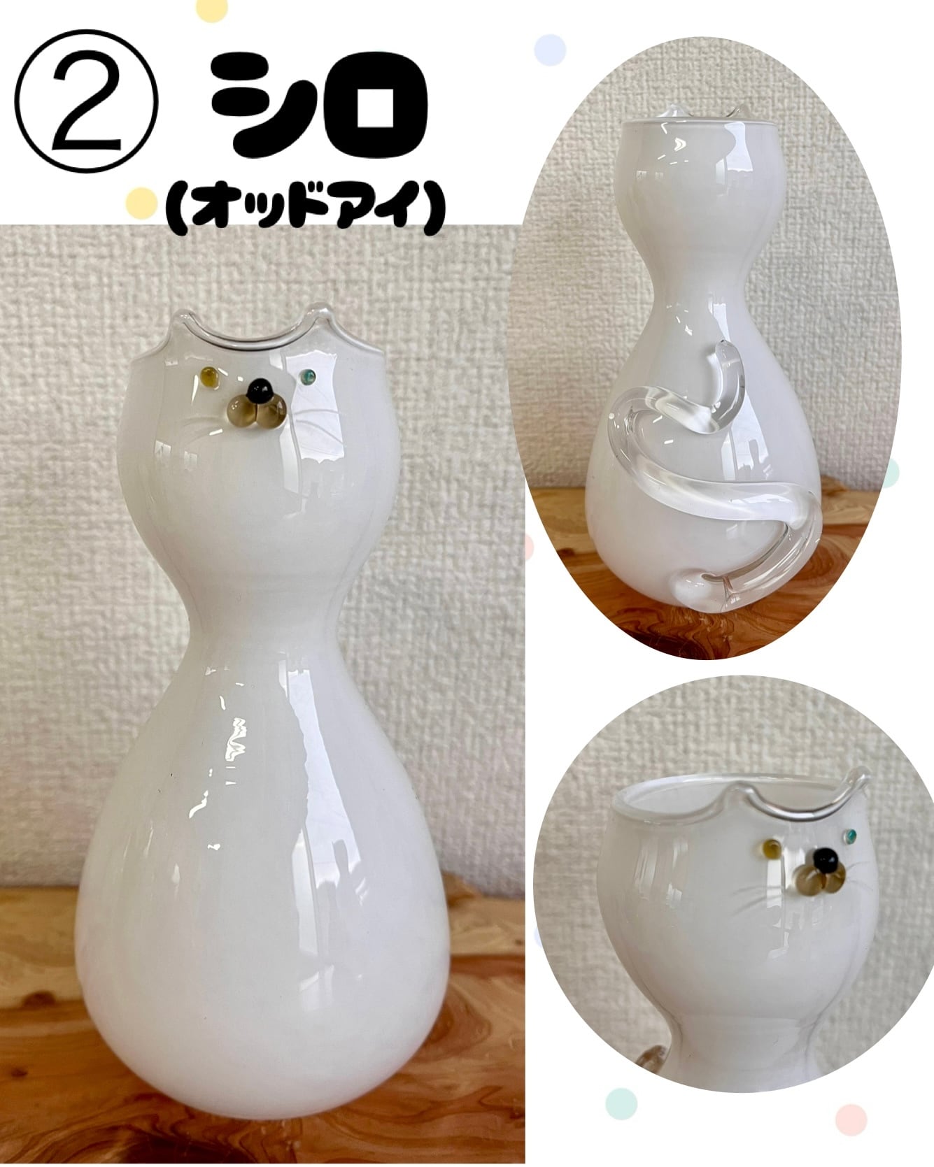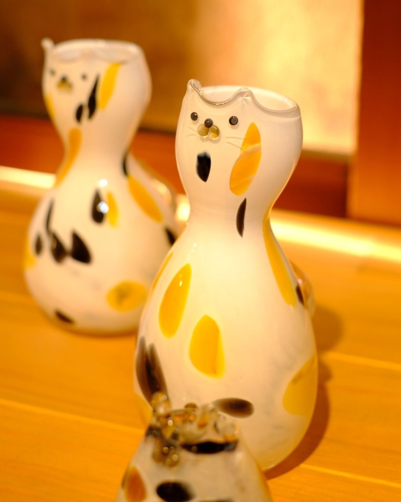 猫のお顔がついたガラスの花瓶。